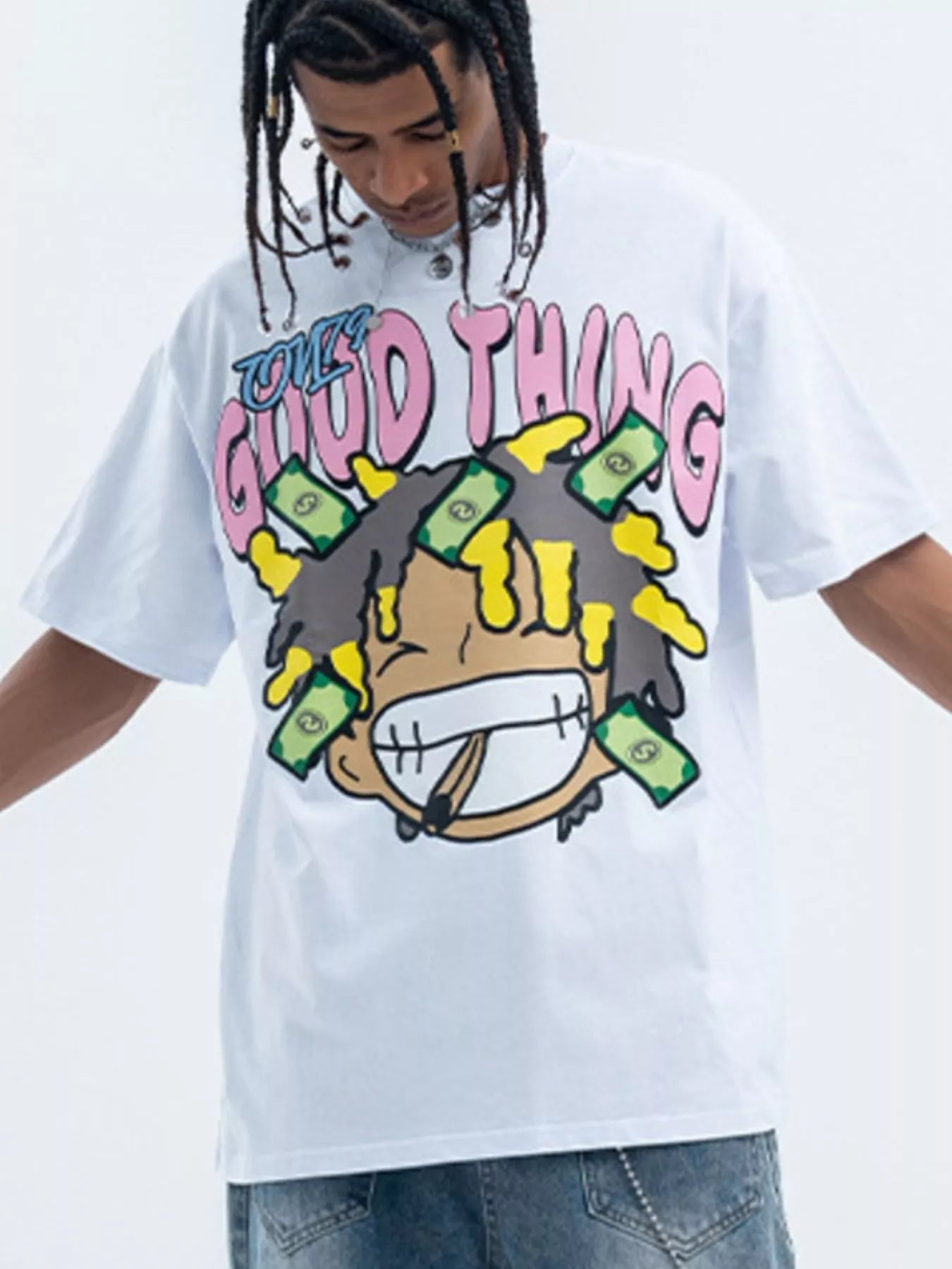 T-shirt casual da uomo con scollo tondo e grafica