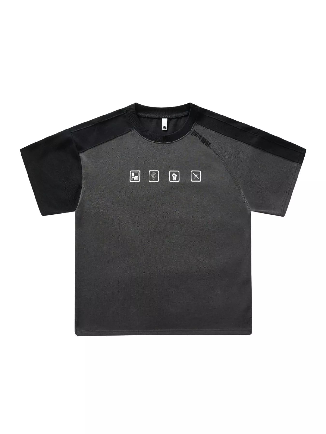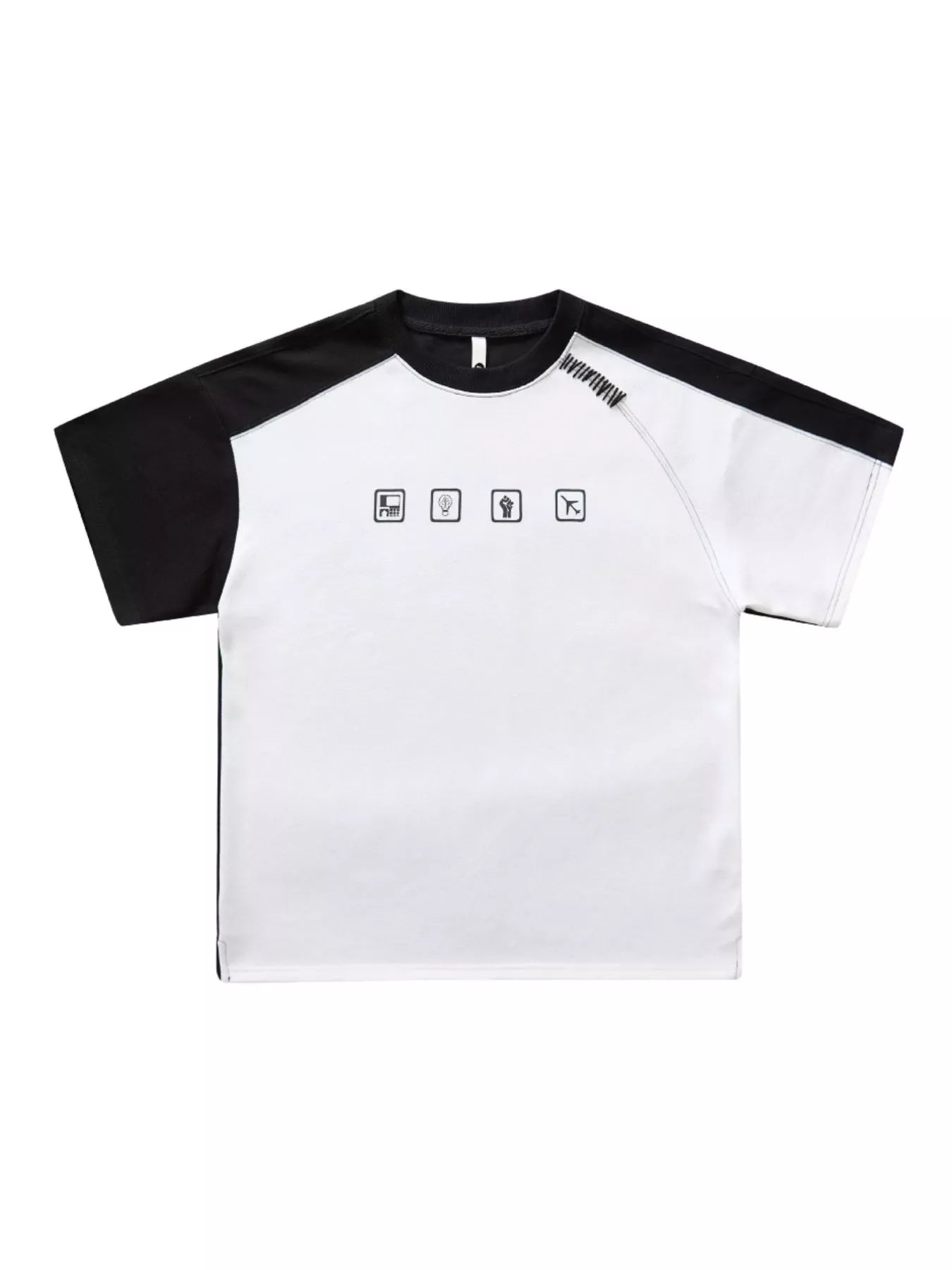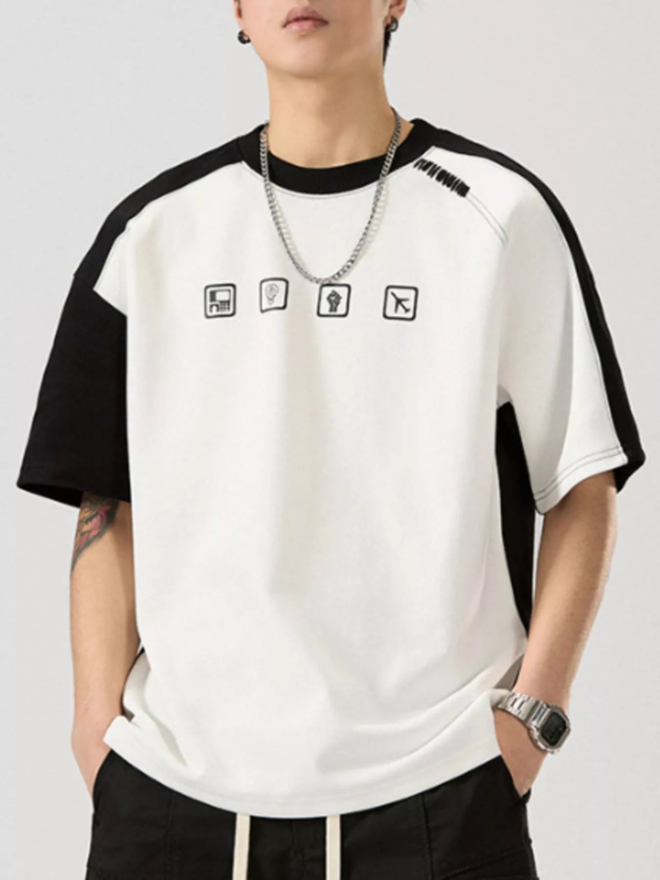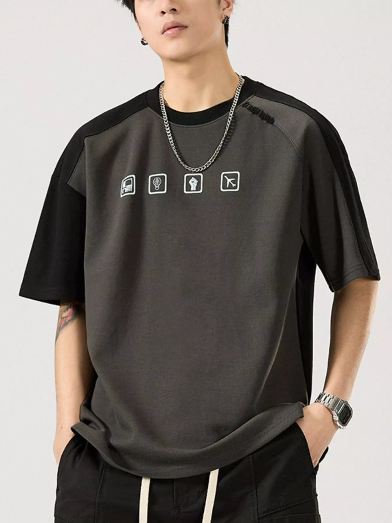 T-shirt casual de manga comprida para homem com contraste, tamanho grande.