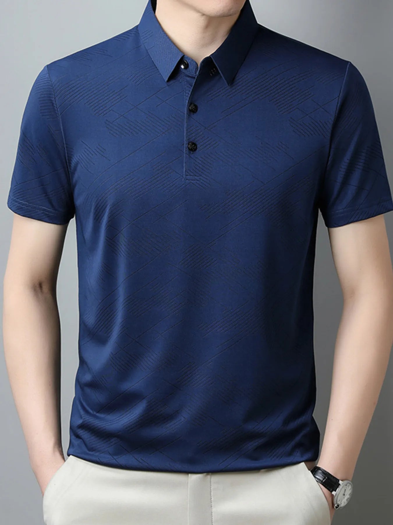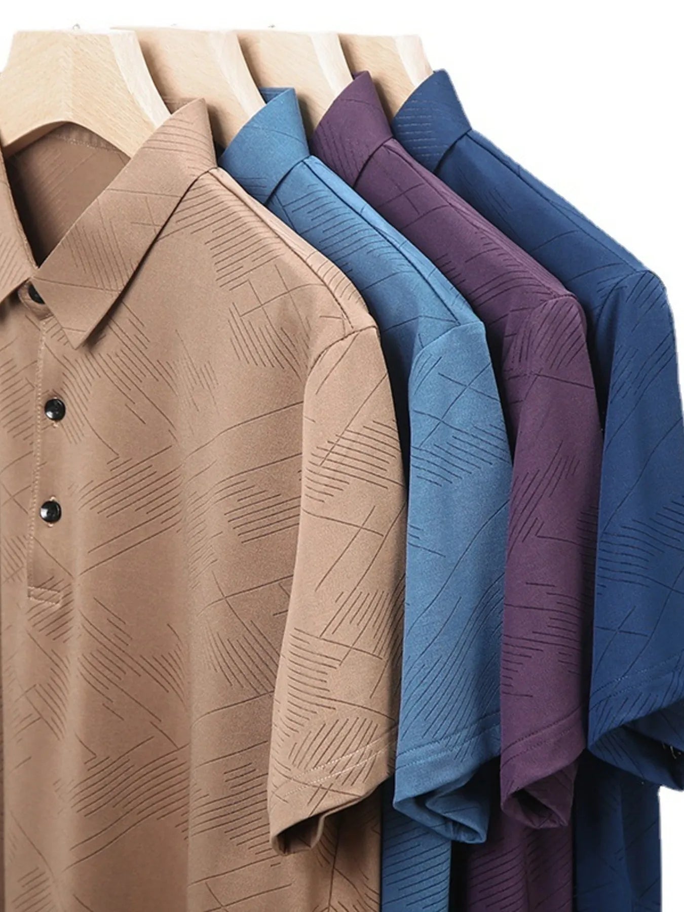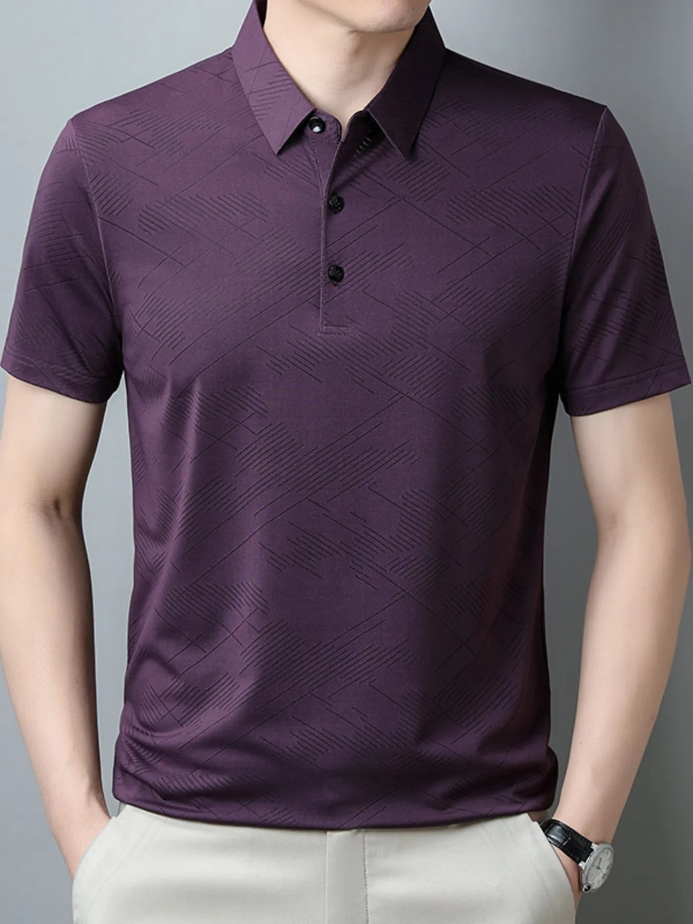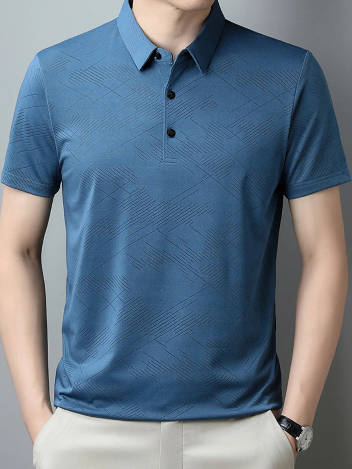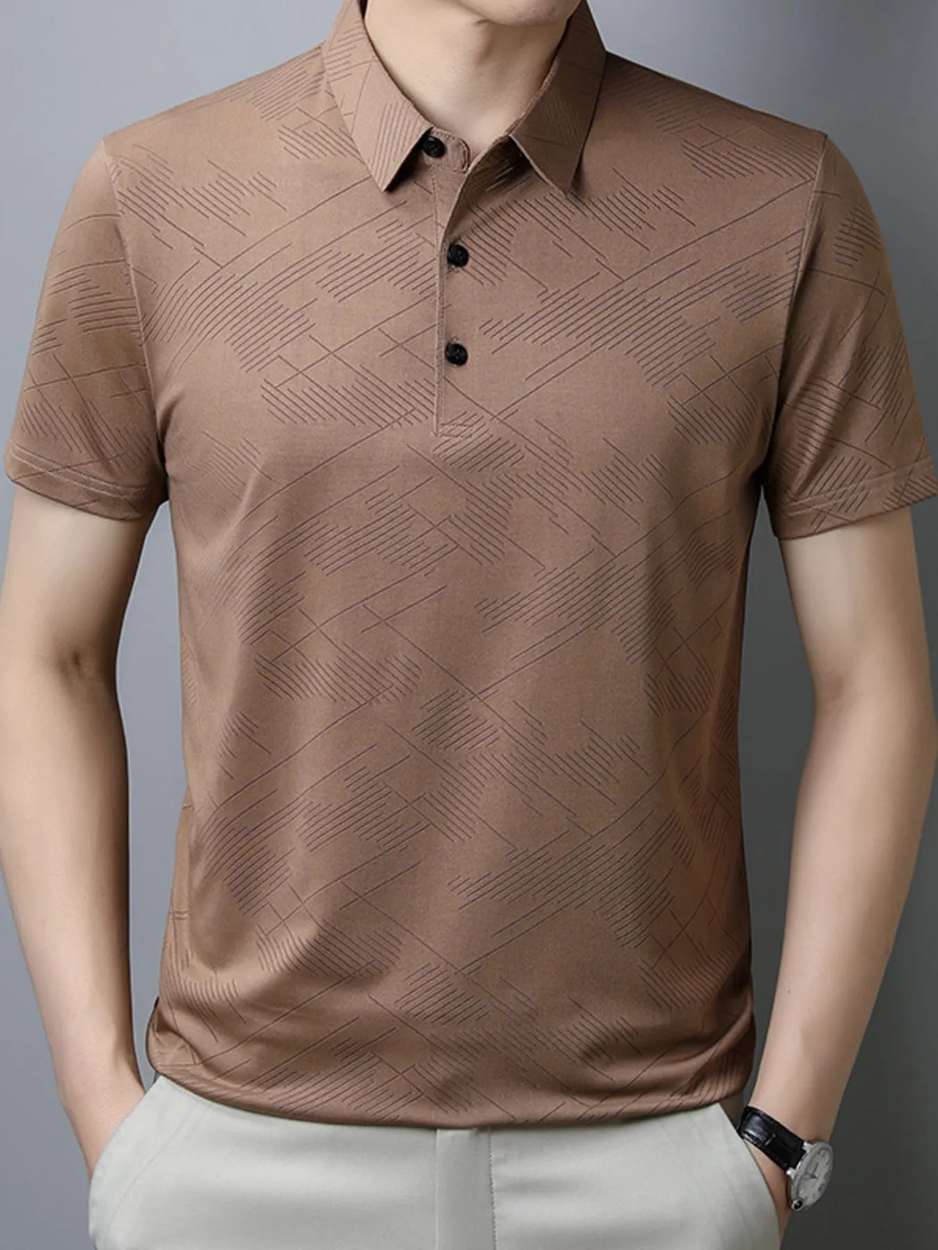 Polo de homem plus size respirável de manga curta com estampado geométrico