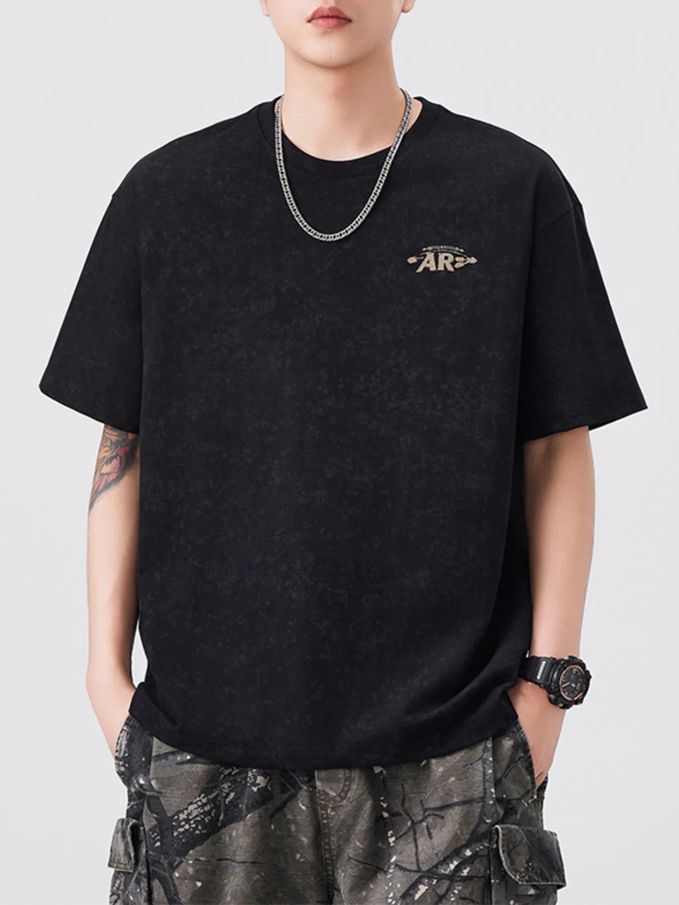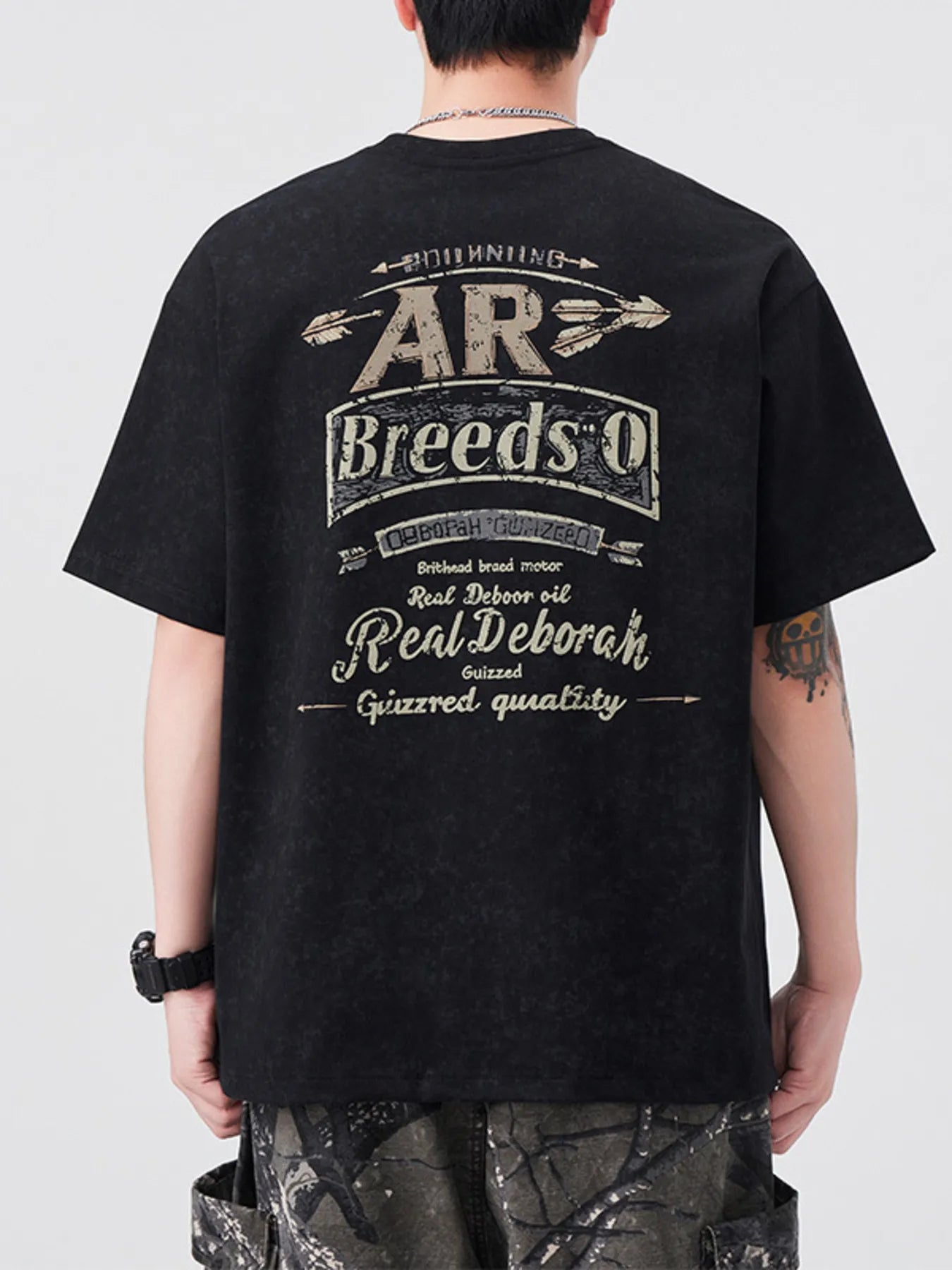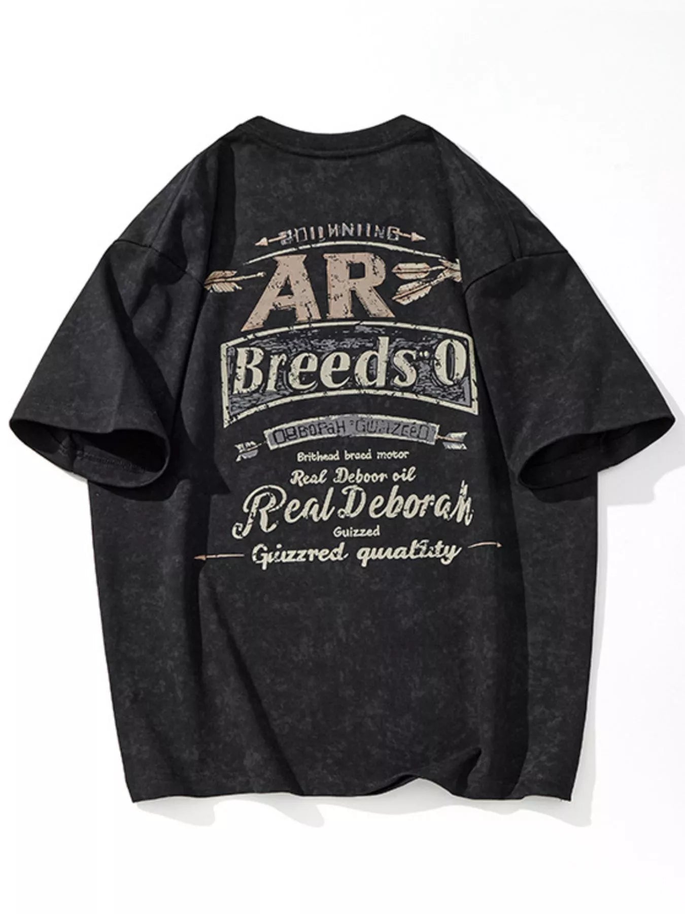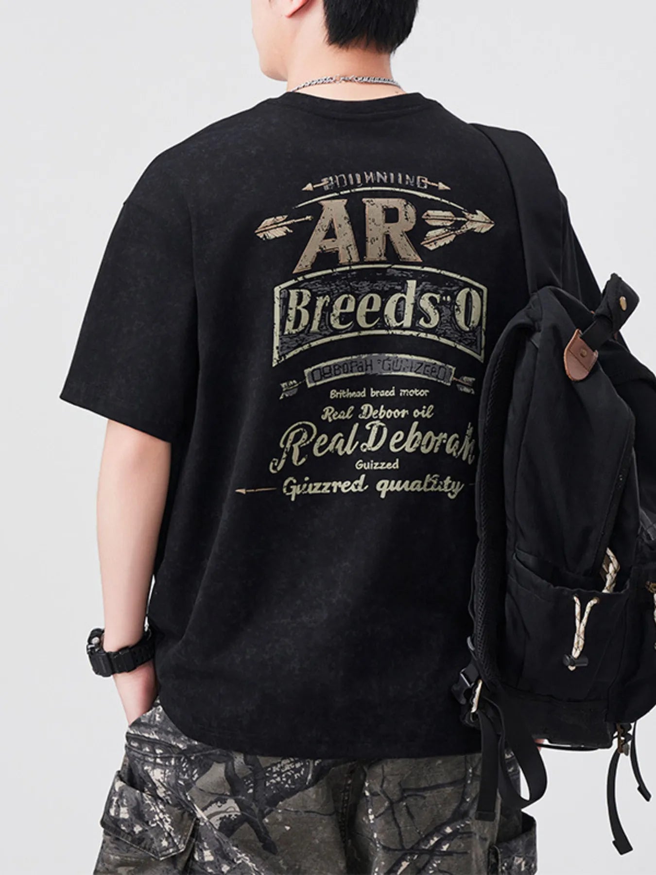 T-shirt de manga curta para homem plus size com gola redonda e estampado de letras