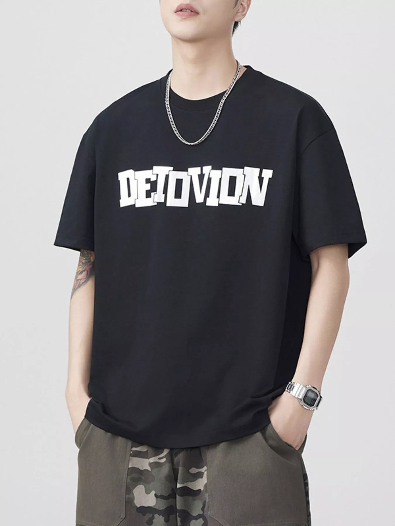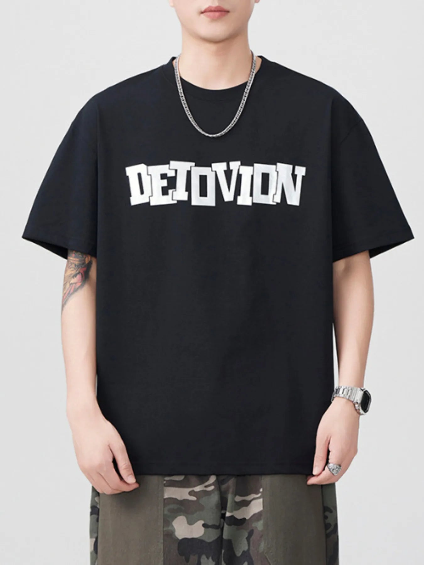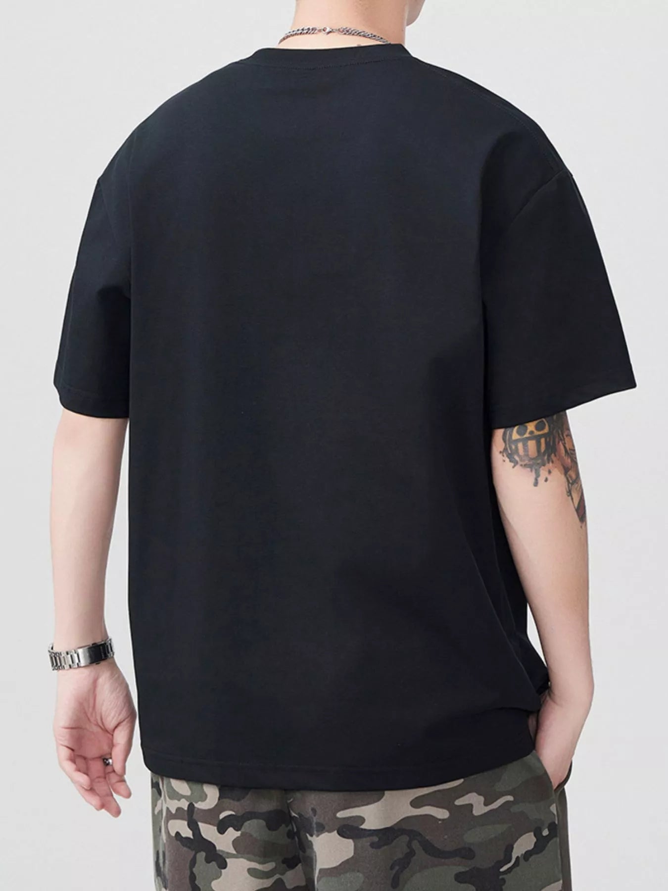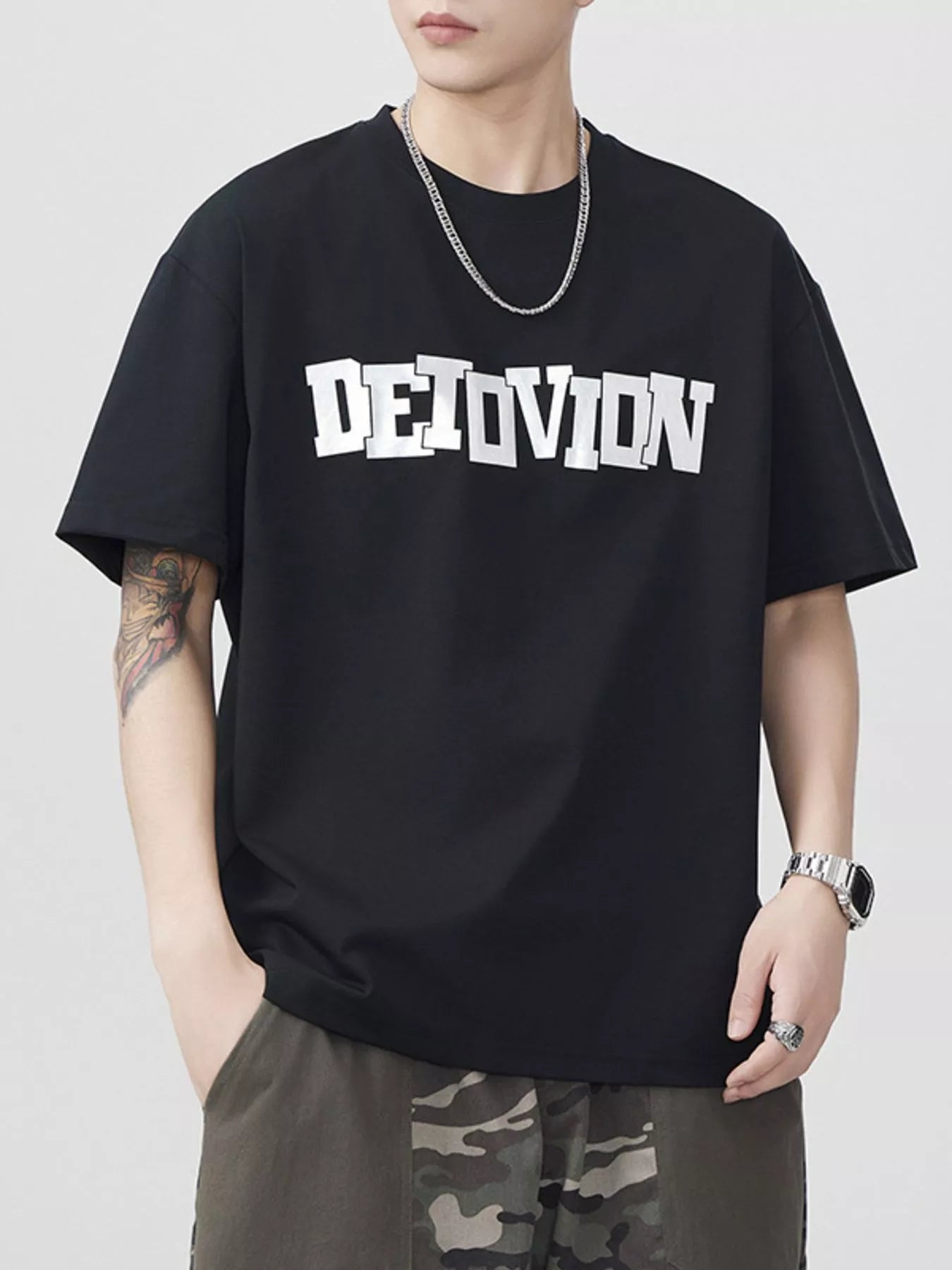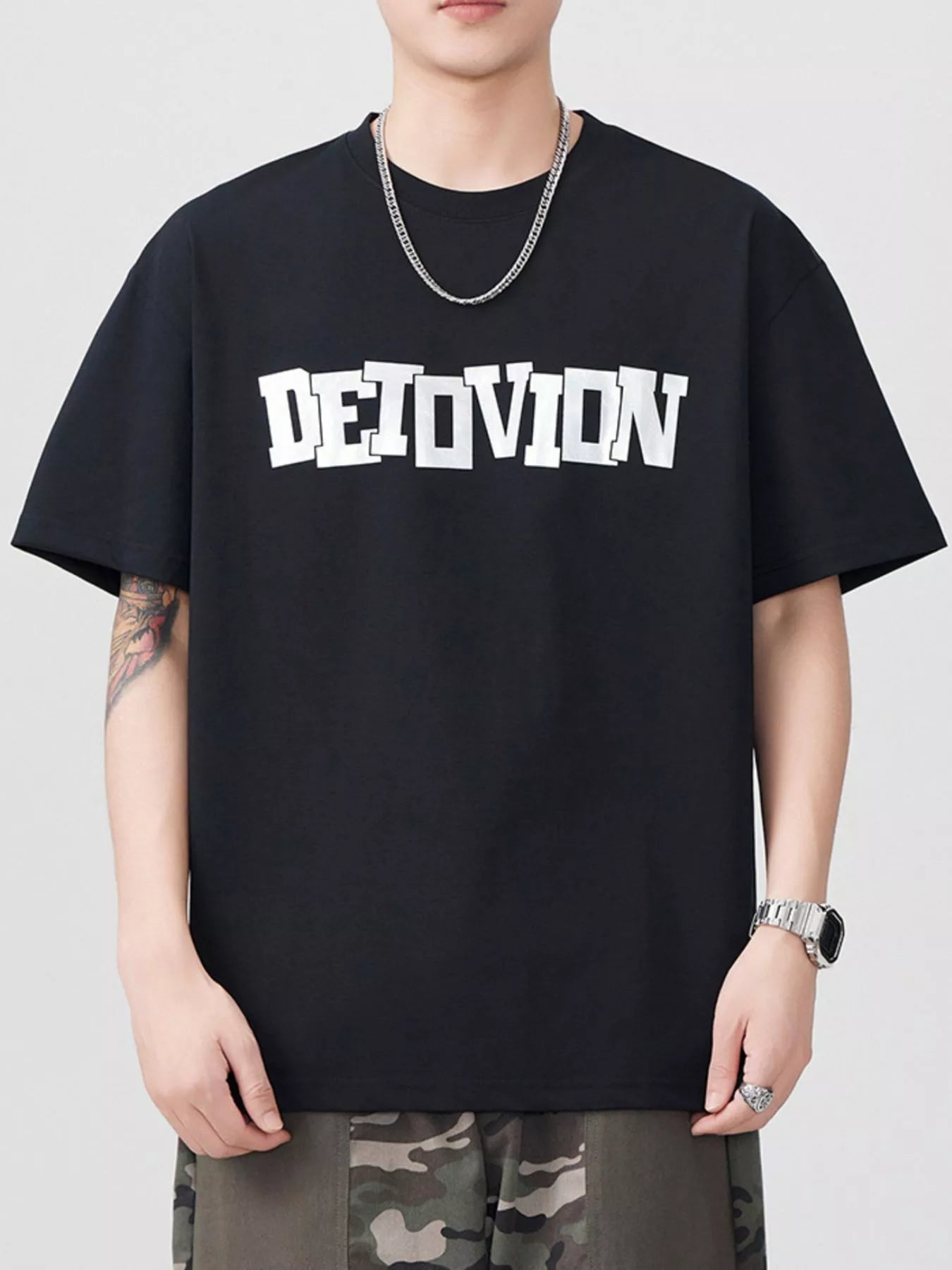 T-shirt de manga curta para homem plus size com gola redonda e estampado de letras