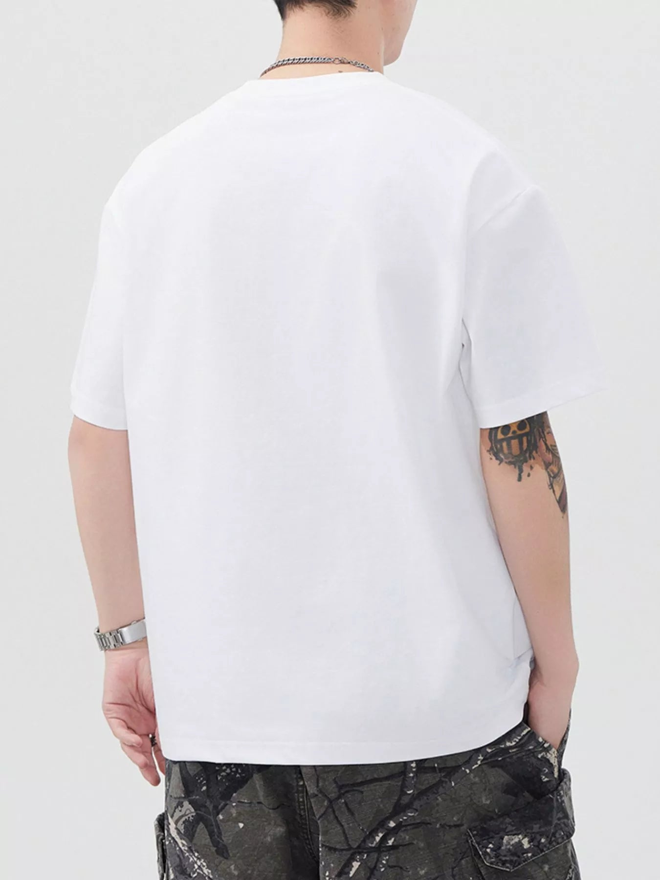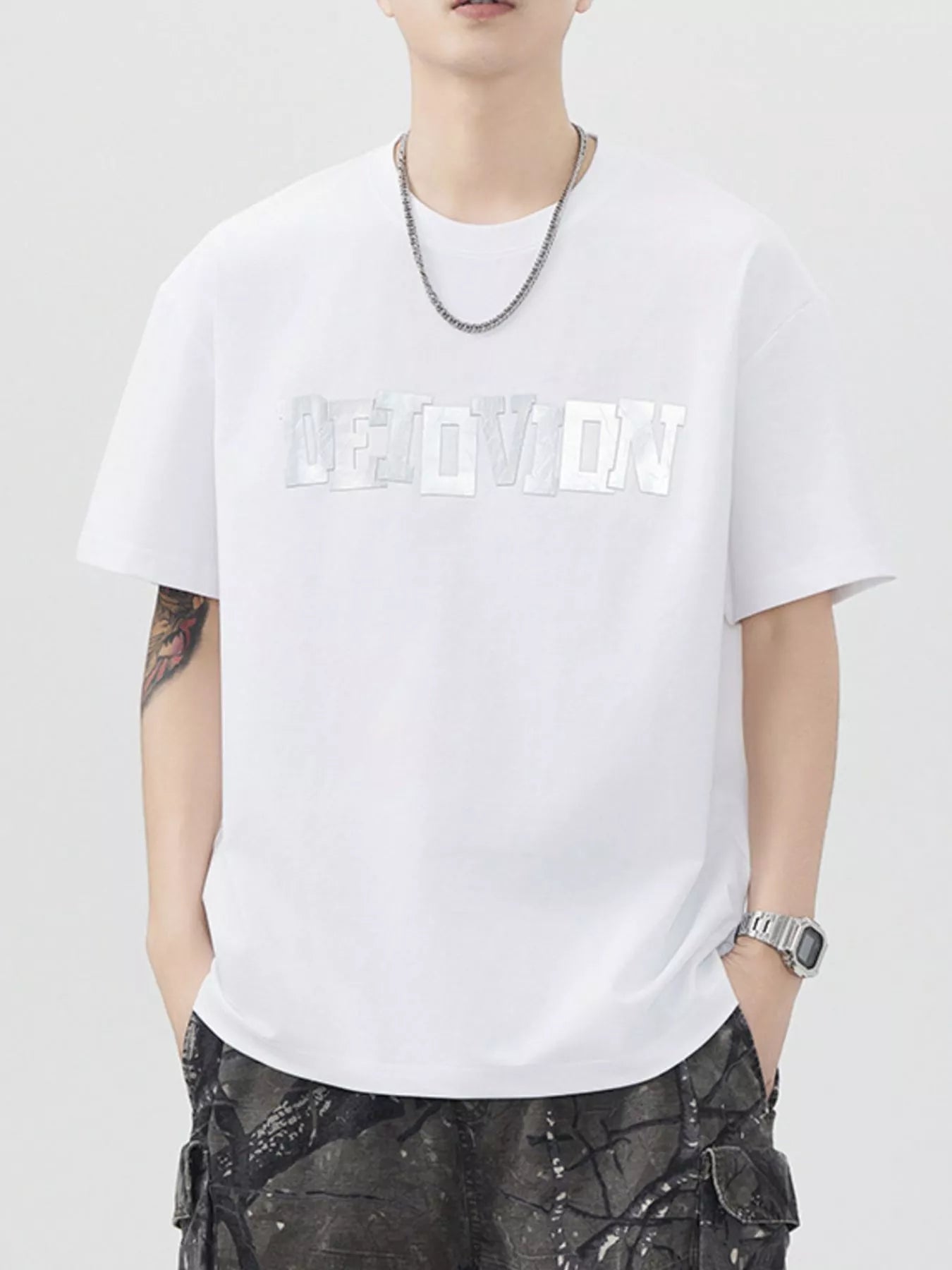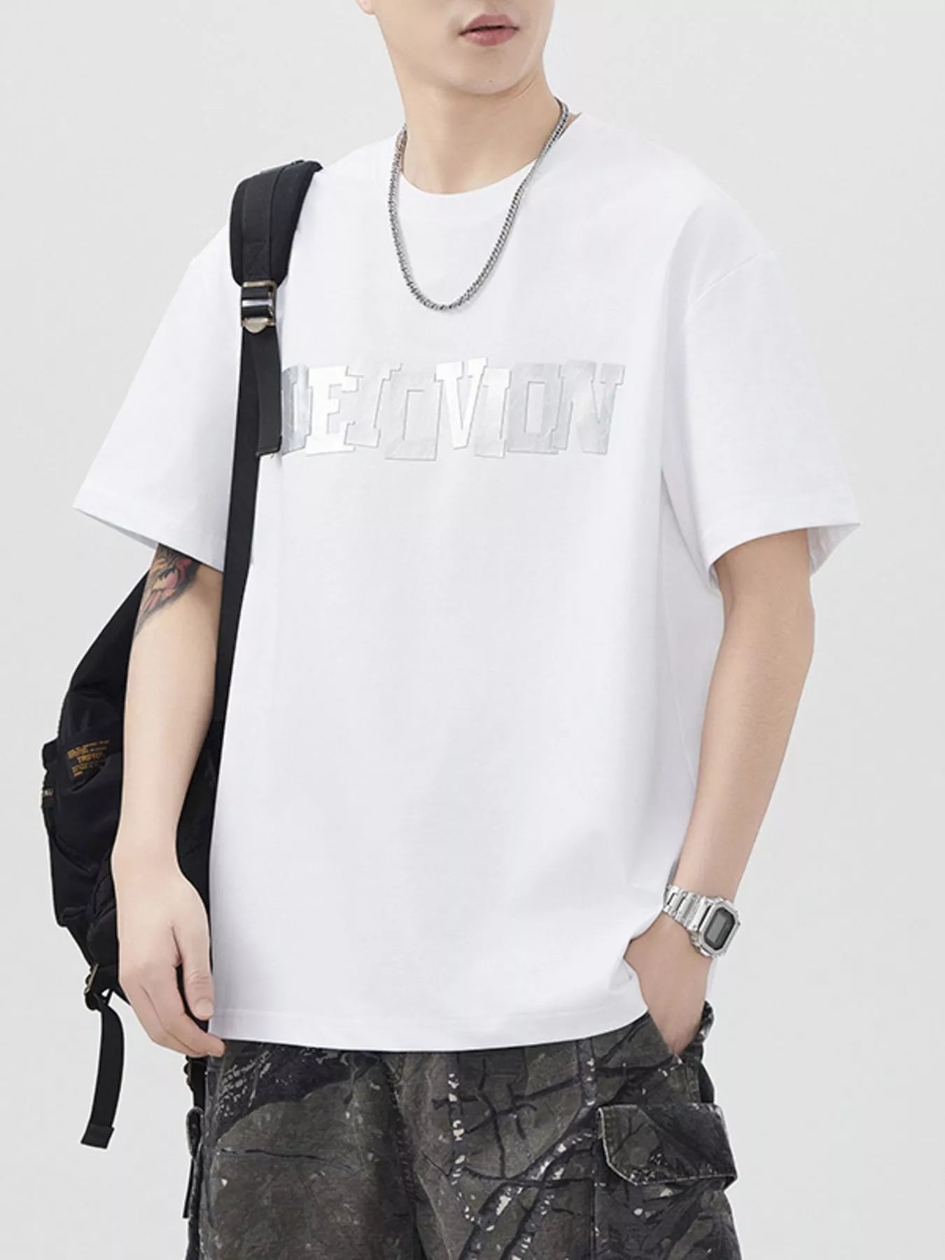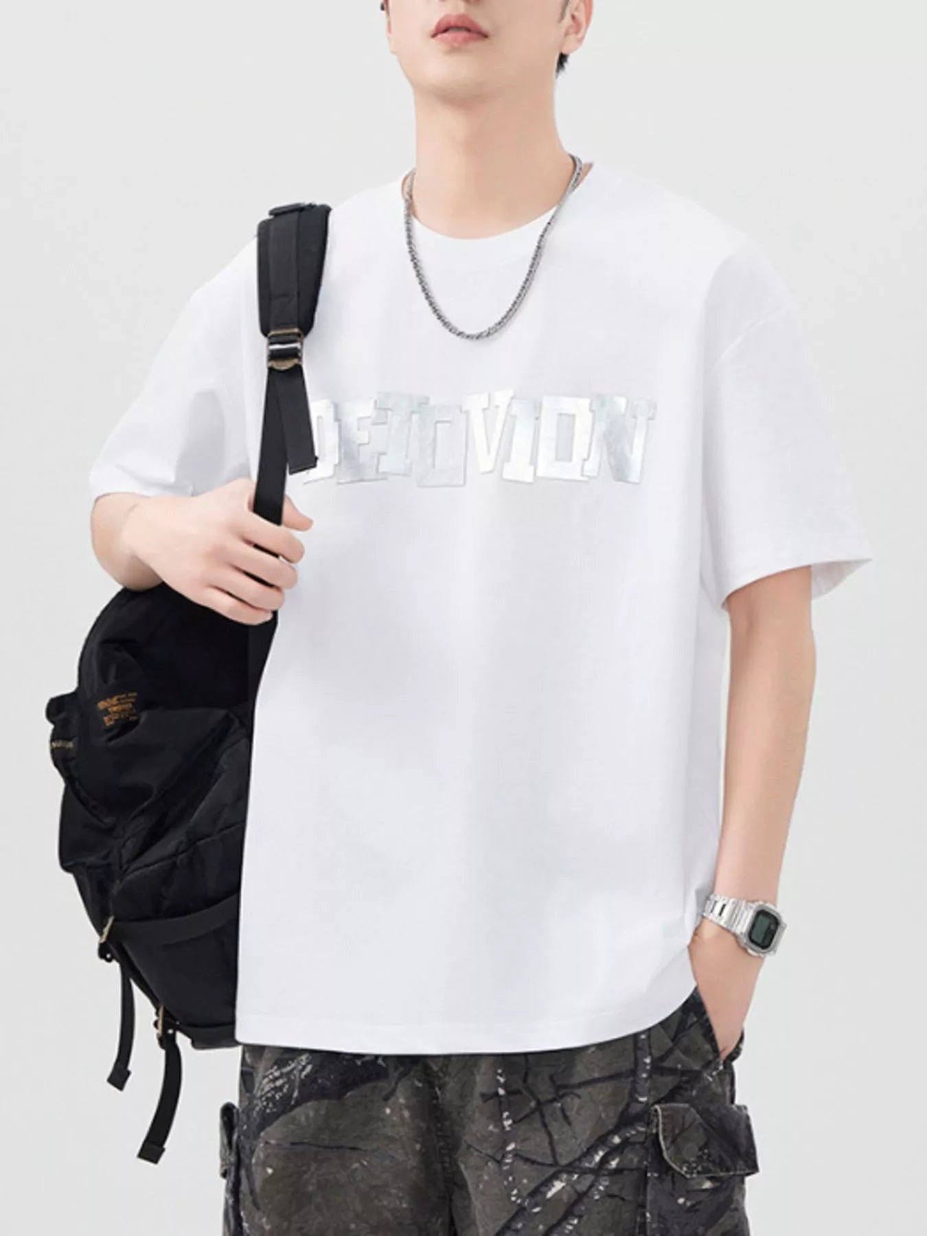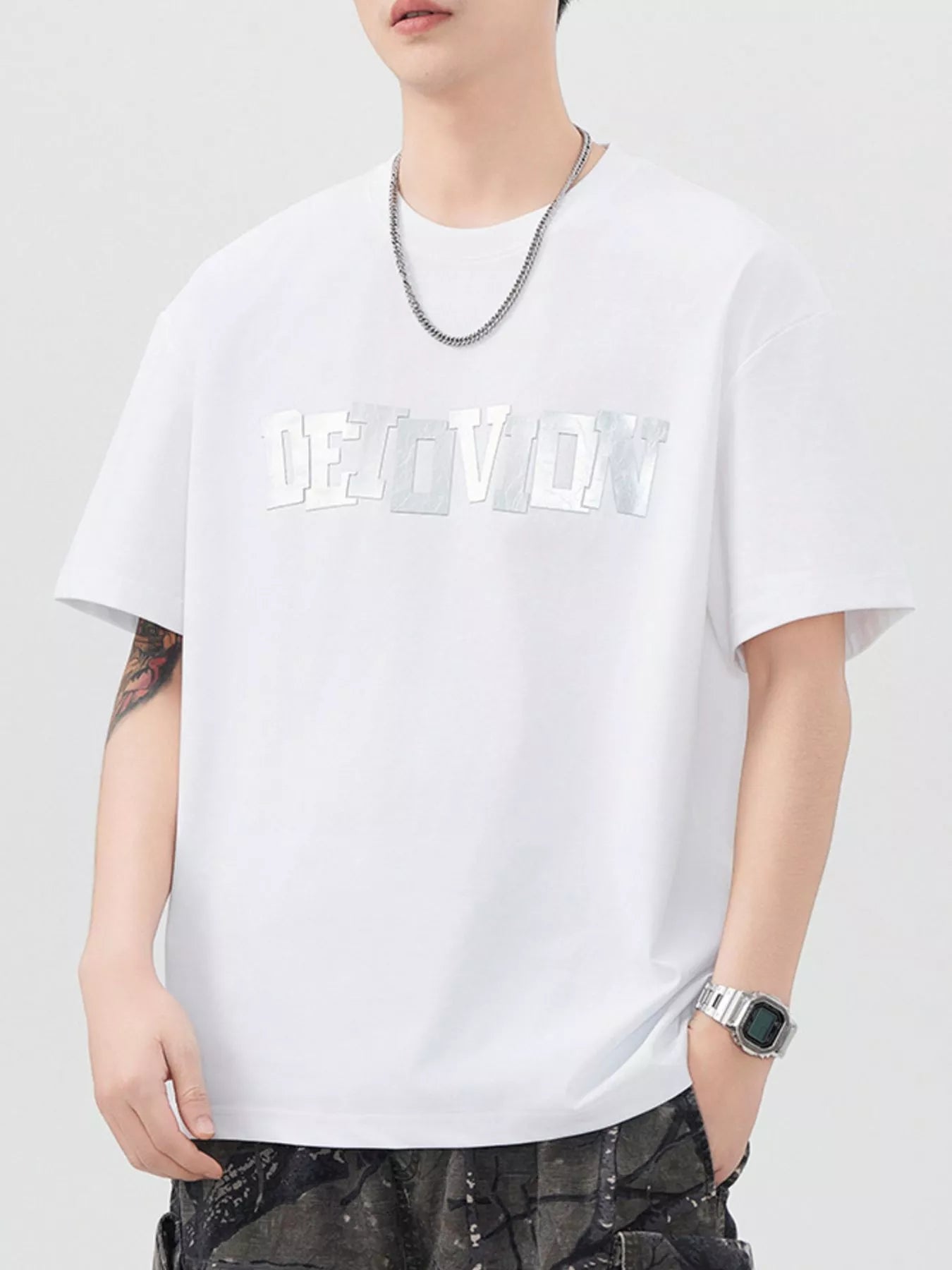 T-shirt de manga curta para homem plus size com gola redonda e estampado de letras