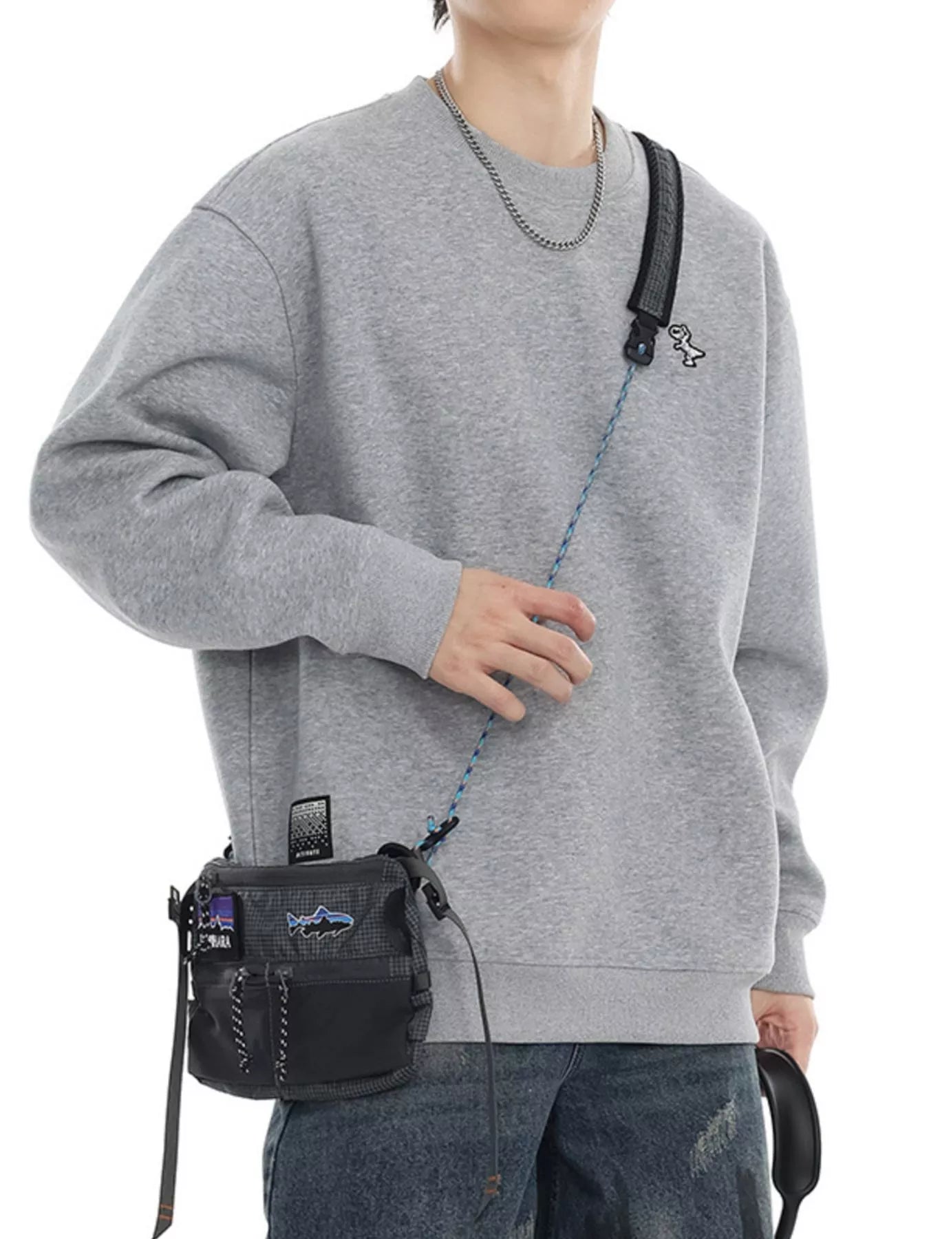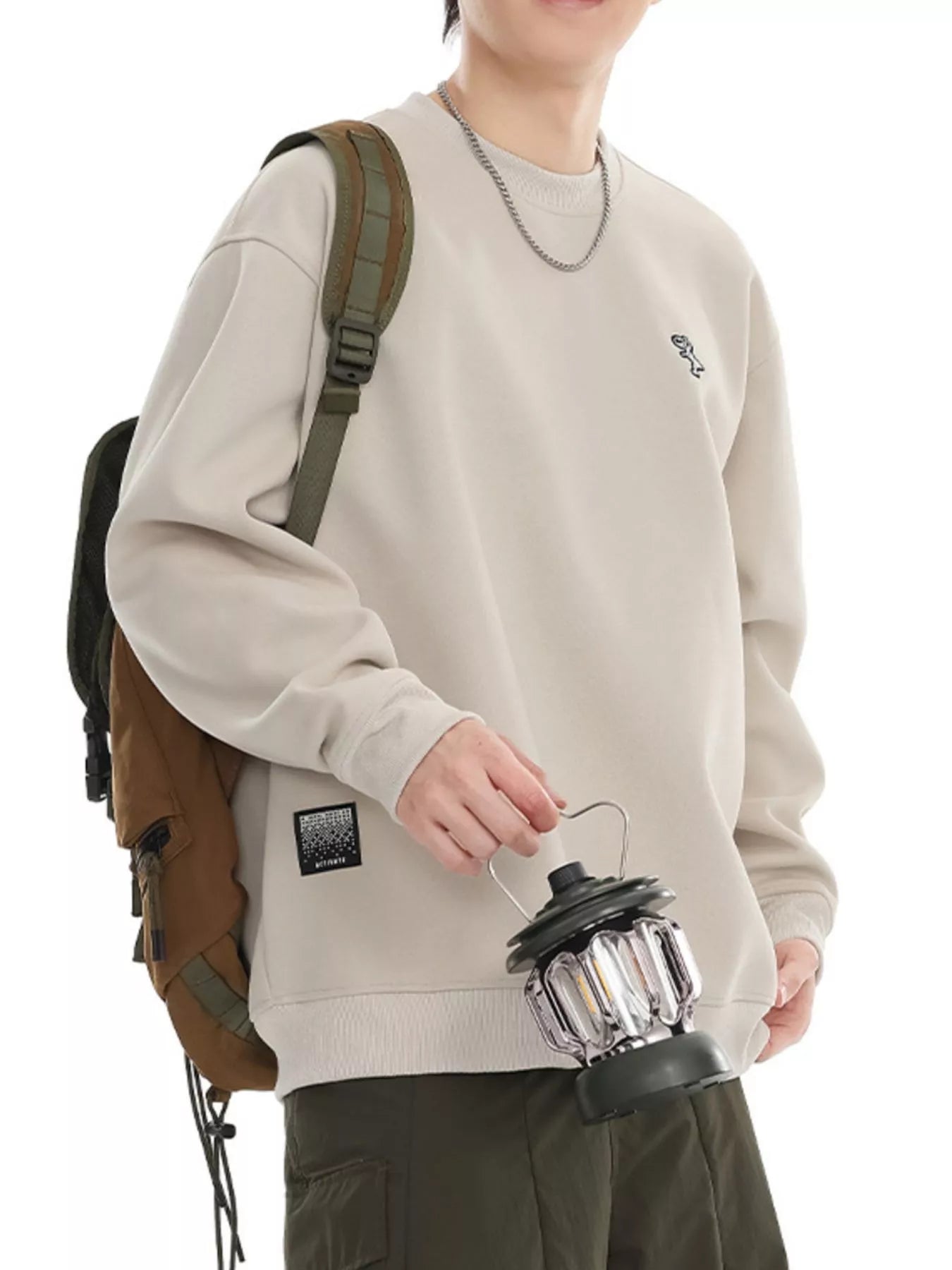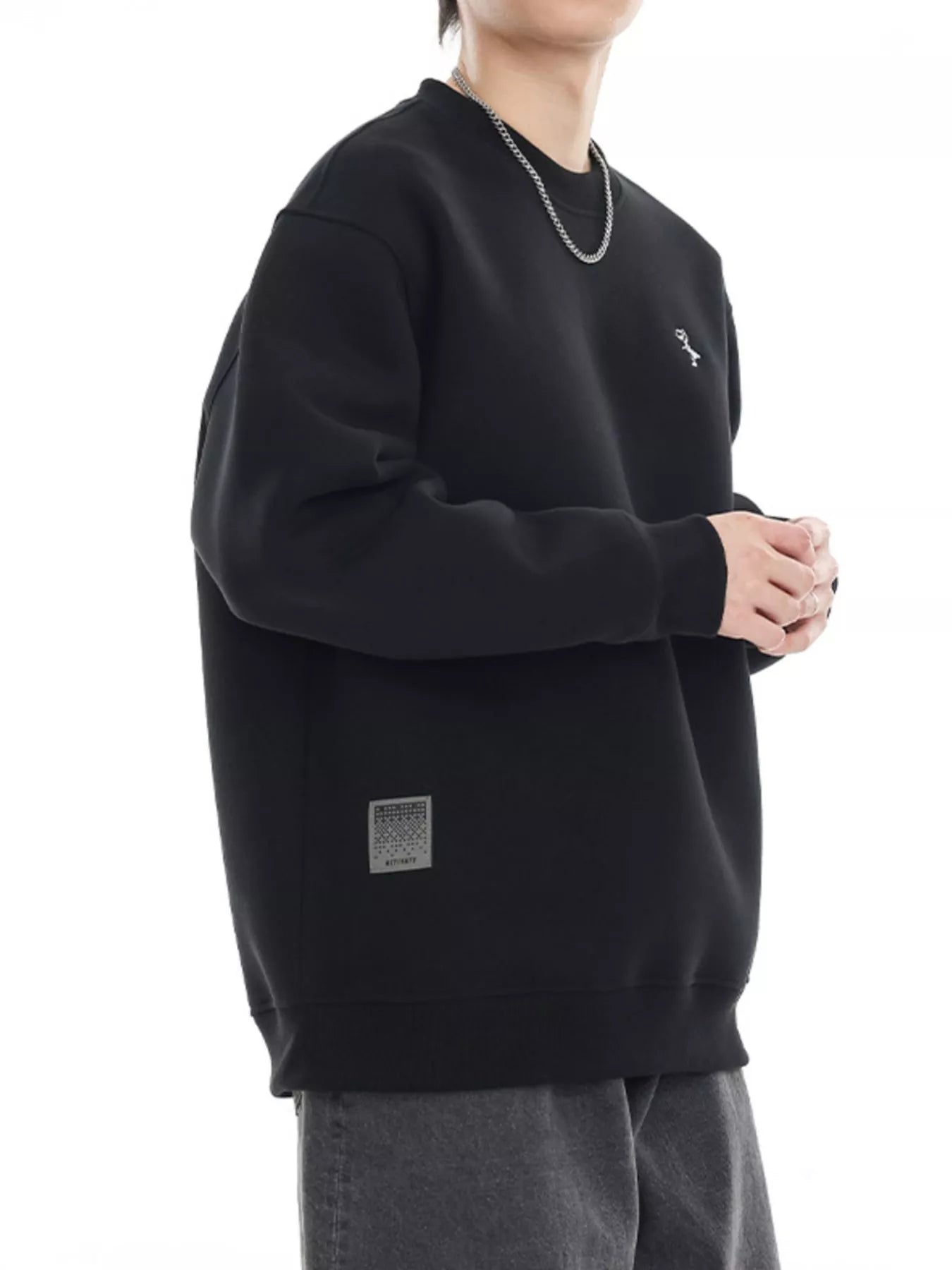 Sweatshirt de homem plus size com gola redonda e ombros caídos