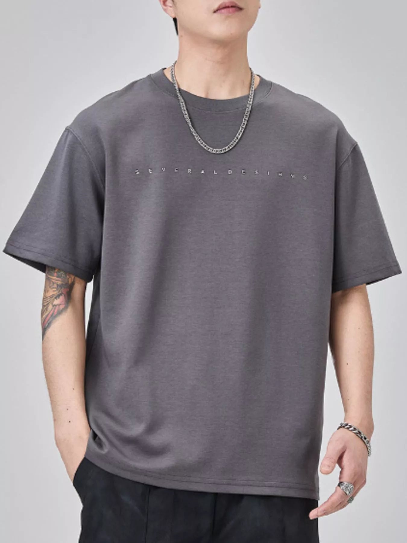 T-shirt de manga curta para homem plus size com gola redonda