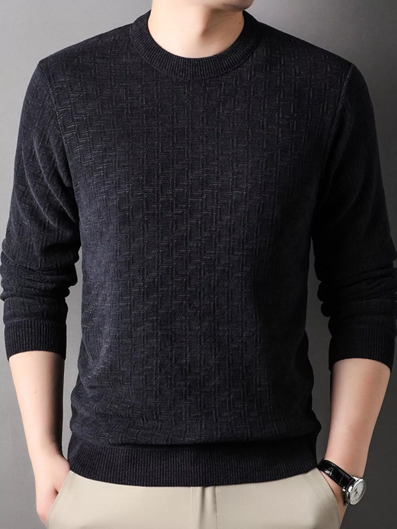 Men's Plus Size Round Neck Long Sleeve Knit Top !