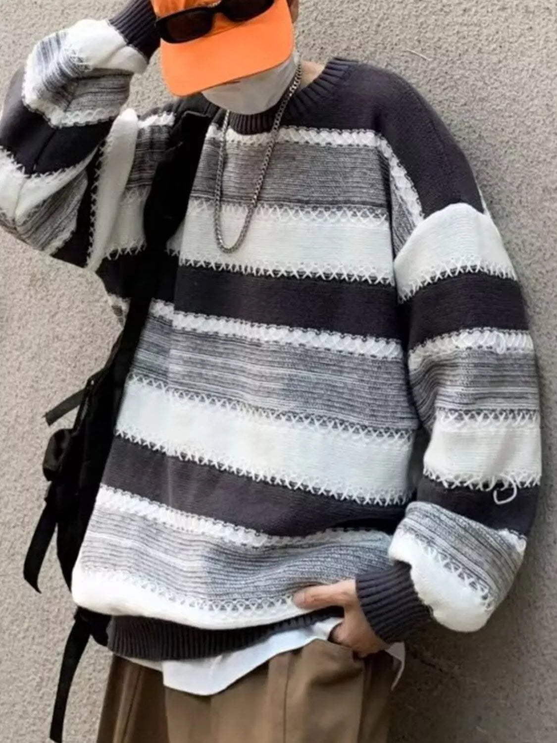 Men's Striped Pattern Relaxed Fit Sweater